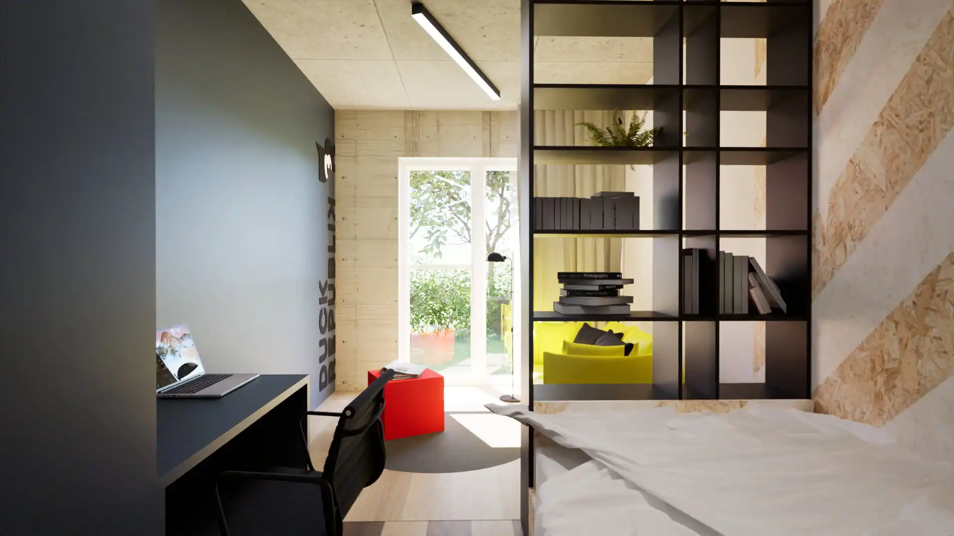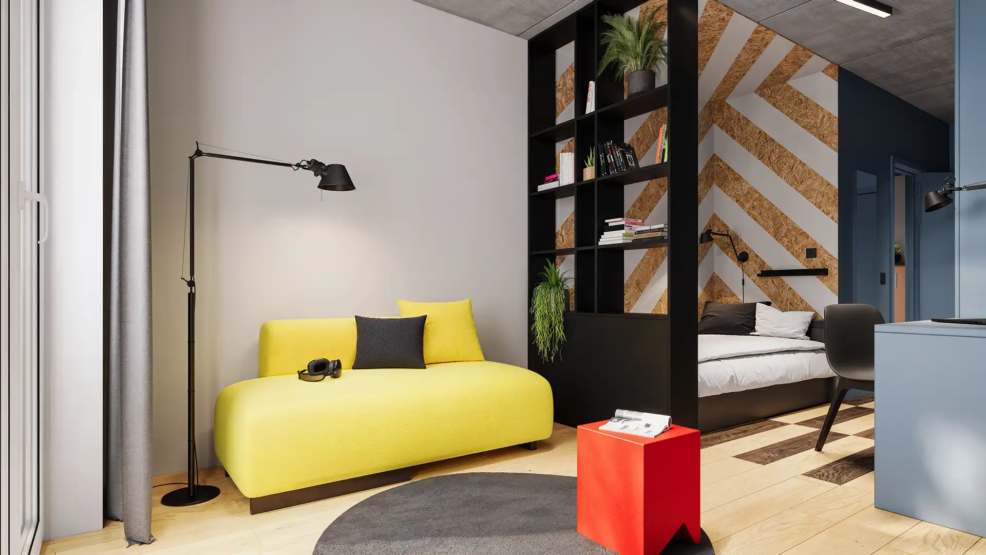 A fully private micro-apartment designed for those who value quiet study and personal space.